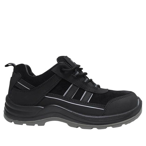 COMPOSICIÓN : Cuero gamuzado CARACTERISTICAS :  Zapato Inyeccion Directa/Bidensidad. Anticlavo -Puntera Acero Color: Negro Modelo: Zapato Forro: Cu...